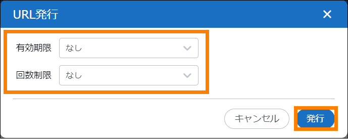 ② 有効期限と回数制限を設定し、[発行]をクリックする。