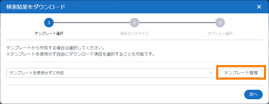 | 手段 | [選択]をクリックすると表示される画面で、対象の手段を選択して検索できます。 | ||