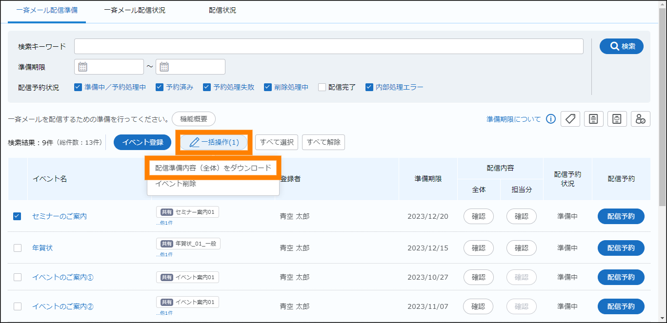 - 左上の「メールアドレス」にチェックを入れると、一括でチェックの操作ができます。