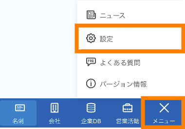 | ① | 名刺 | 名刺情報の閲覧ができます。 | 参照 |