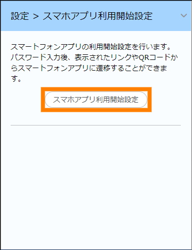 をタップし、「スマホアプリ利用開始設定」をタップする。
