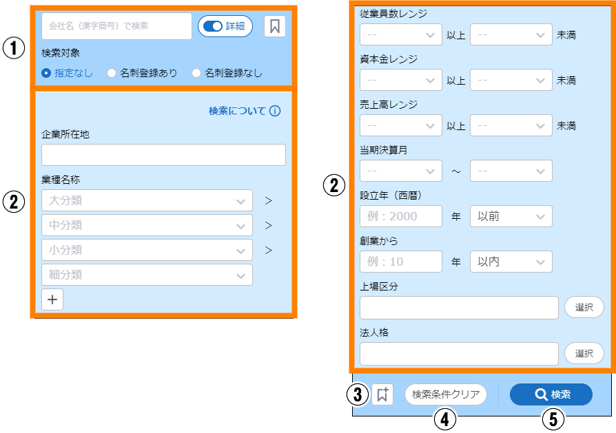 | ② | 詳細検索条件 | 詳細検索の条件が設定できます。 | |