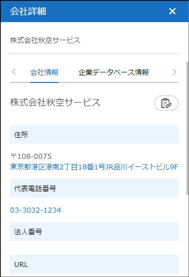 - [会社]をタップすると、「会社詳細」画面が表示されます。