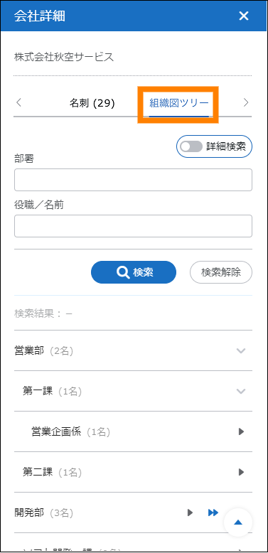 をタップすると、組織図ツリーを表示できます。組織図ツリーについては、「4.1.2.1. 組織図ツリーを表示する」を参照してください。