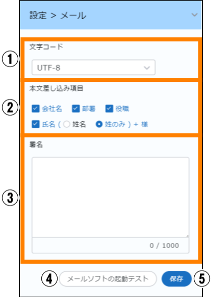 | ③ | 署名 | 本文に追加する署名が入力できます。 |