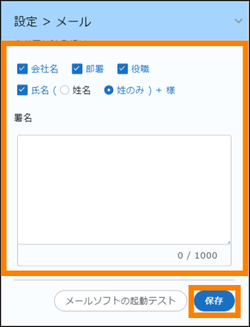 - 本設定は、名刺情報の連絡先からメールを送信する場合に適用される項目です。