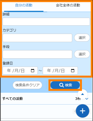| ③ | 検索条件クリア | タップすると、検索条件が初期状態に戻ります。 | |