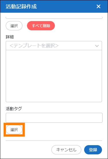 活動記録に付与する活動タグに関する操作をします。活動タグの新規登録、編集、および削除ができます。活動タグを使った運用を行うことで、視認性や検索性が向上し、より活動記録を使いやすくすることができます。