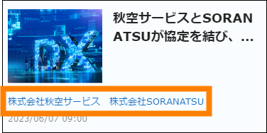 各ニュースには、ニュースに関連する組織名が表示されます。組織名をタップすることで、タップした組織に関連するニュースが一覧で表示されます。