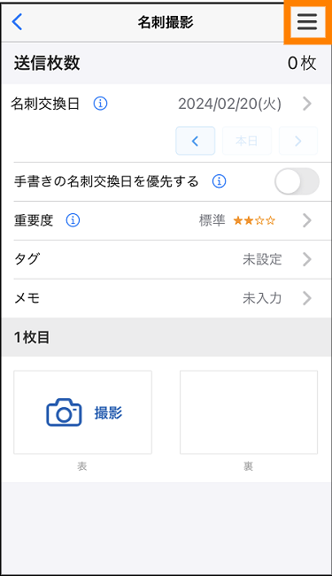 ① [名刺撮影]をタップする。