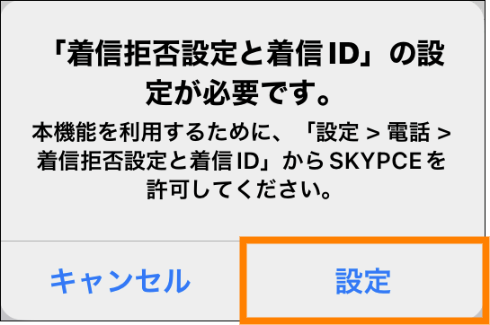 - (iOSの場合)発信者識別APPとして「SKYPCE(スマートフォンアプリ)」を許可