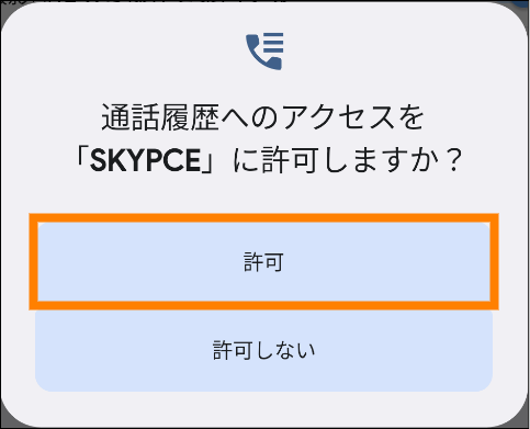 - (Android OSの場合)通話履歴へのアクセスを「SKYPCE(スマートフォンアプリ)」に許可